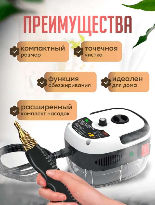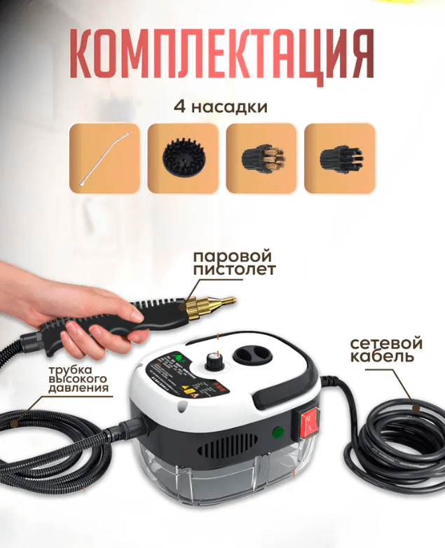 Отличная мощная штука, отмывает и отчищает абсолютно всё, есть 4 разных насадки. Вдобавок дезинфицирует и убивает пылевых клещей - можно использовать для мягкой мебели, штор, коврового покрытия и т д🔥 Вычистит любое труднодоступное место, например в радиаторах отопления, а также идеально подойдёт для очистки межплиточных и оконных швов🔥